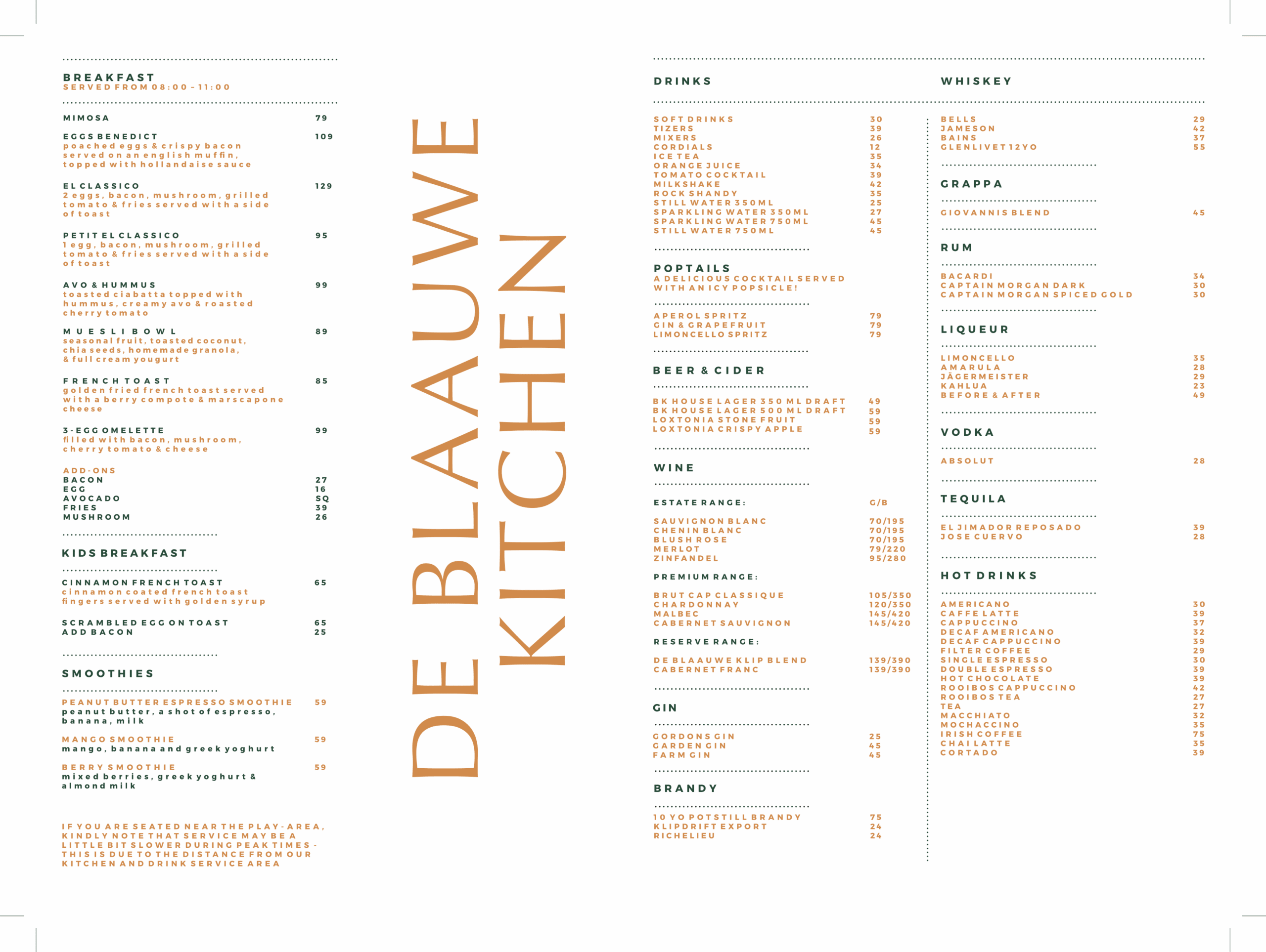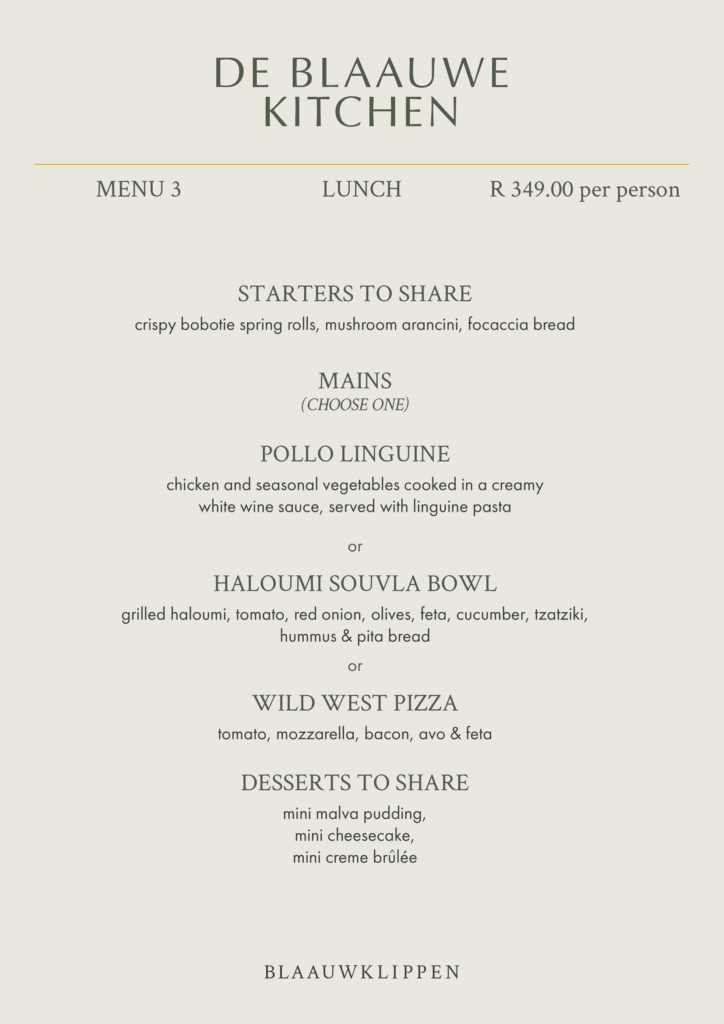 Tucked into the heart of Blaauwklippen Estate, De Blaauwe Kitchen offers a relaxed, country-casual dining experience inspired by