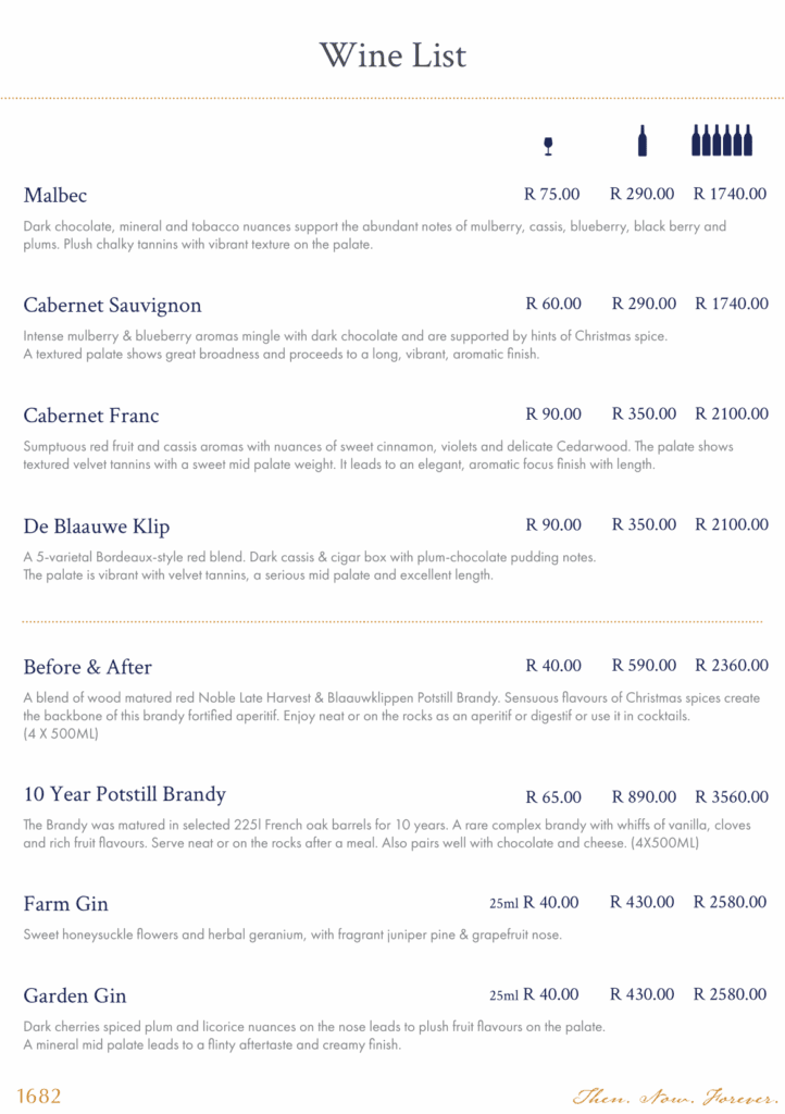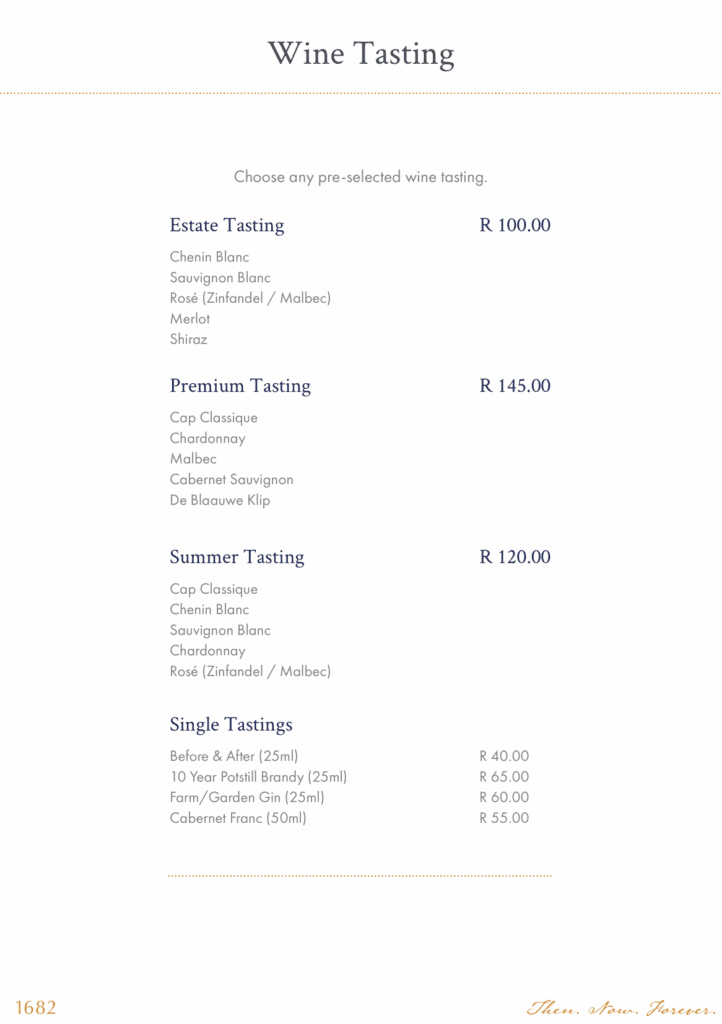 Summer Tasting – R120 per person