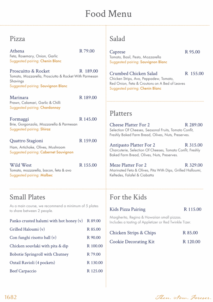 Kids Pizza Pairing – R115 per person  (Margherita, Regina & Hawaiian small pizzas, Includes a tasting of Appletizer or Red Grapetizer)
